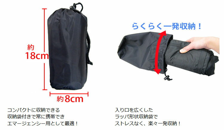 不必要時はコンパクトに収納ポーチに入れて持ち歩けますので携行するのにも便利です。
