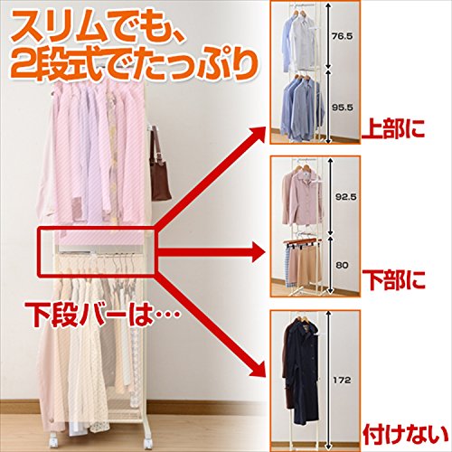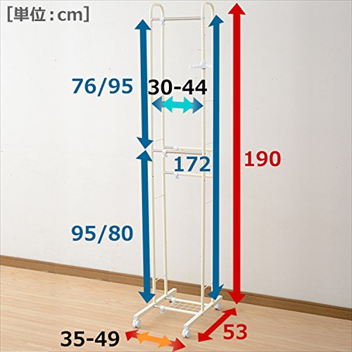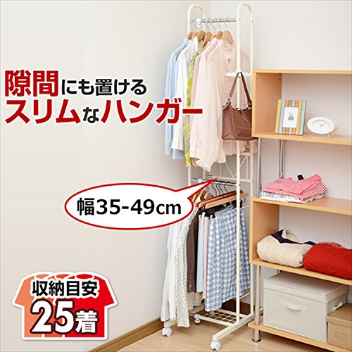 山善 ハンガーラック スリム 2段 幅35-49×奥行53×高さ190cm 耐荷重15kg シャツ収納目安10着 アイボリー SLH-500(IV)