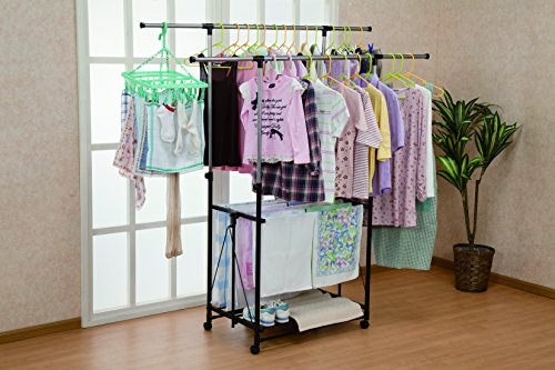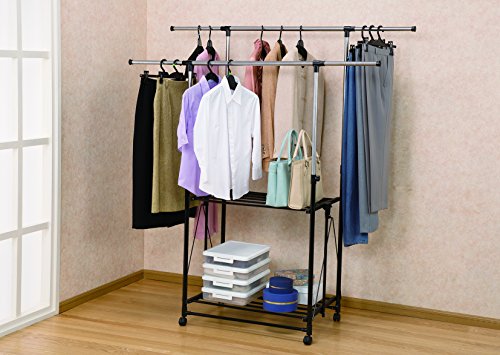 ハンガーバーが上下にある為に、一つ分のスペースを活用して二倍の収納を可能としてくれるハンガーラックになります。お値段も安いコスパの高いハンガーラックとして口コミでも評判が高く人気です。