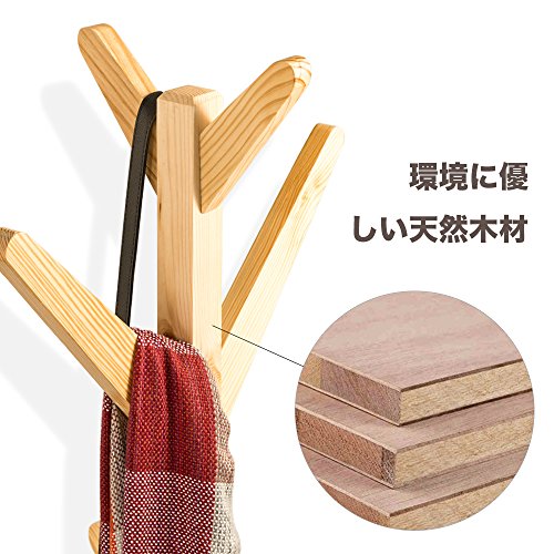 通常のハンガーラックと異なり、こちらは木枝式設計となっていて、日頃活用しているマフラーやバッグや帽子などをさっと引っ掛けられます。支柱の太さは4cmと太く頑丈で、フックは計8つあり収納力にも優れていますので、ご家族で活用していく事が出来る便利な木製ハンガーラックです。