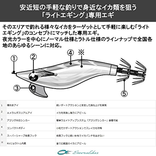 独特の曲がりと厚みのあるヘッドを持つエメラルダスフォール。フォール姿勢もよく、水深のある釣り場では非常に高い実績を持っています。やる気のあるイカに見つけてもらえれば、初心者の方でも釣るのは簡単!音でアピールできるラトルバージョンも合わせて、サーチの釣りでアオリイカをゲットしましょう!