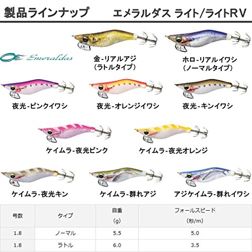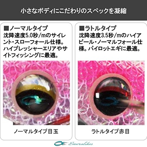 2018年秋の新作!姿勢にこだわったフォール系のエギです。ノンラトルのノーマル、ラトル入りのRVをラインナップしています。3.5号の沈降速度3.75秒/mは、エメラルダスフォールよりもややスローなセッティング。低重心、25gと飛距離アップも期待できそうです。揺れずに落ちるステイアクションで、セレクティブなスレイカを攻略してください!