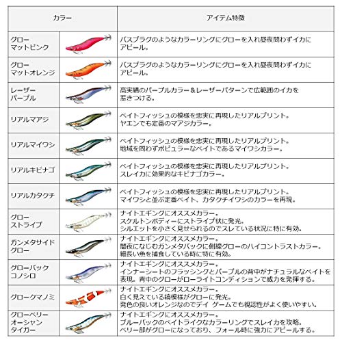 秋の小イカシーズン、アオリイカ以外の小さなイカを狙う釣りで活躍するライトモデルです。ラインナップは1.8号、ノーマルは5.5gで沈降速度5.0秒/m、ラトル入りは6.0gで3.5秒/mとなっています。メバリングロッドなどライトゲーム系のタックルでも遊べるサイズで、エギングのお試しにもおすすめ!秋はアオリイカにも有効なので、まずはエギだけで遊んでみたい方は是非チェックしてみて下さい。