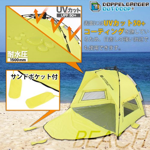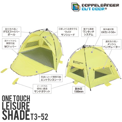DOD(ディーオーディー) ワンタッチレジャーシェード 2-3人用サンシェード ライムイエロー T3-52