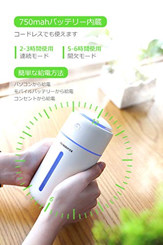 またUSBが接続できる環境であれば、場所を選ばずに使用することもできます。ベッドサイドだけでなく、自宅の卓上やオフィスのデスク周りでも活用できる、小型の加湿器です。さらにLEDライト機能も搭載されているため、暗い寝室のベッド周りを華やかにしてくれます。