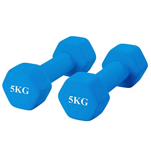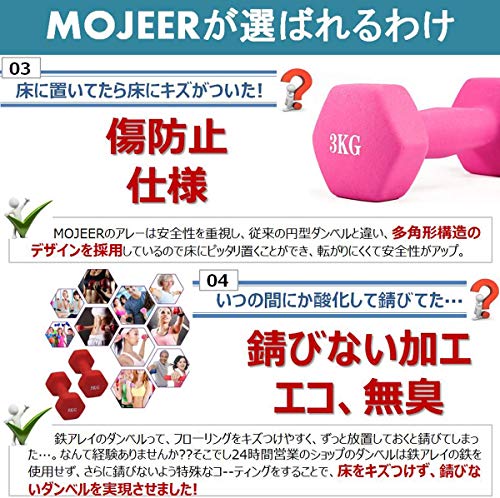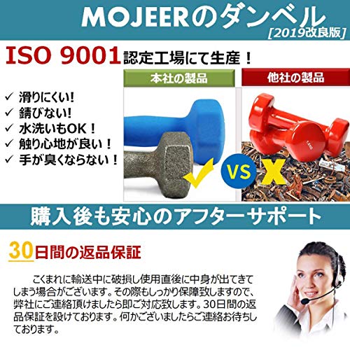 MOJEER ダンベル【2個セット1kg 2kg 3kg 4kg 5kg 6kg 8kg10kg】【 選べる8色】筋トレ ダイエット 鉄アレイ ソフトコーティング (5kg×2個セット / ブルー)