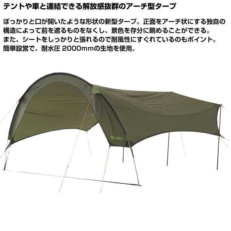 タープは単体でも利用でき、リビングとしての使用も可能。耐水圧は1200mm程度で、雨が降ってきてしまっても安心です。