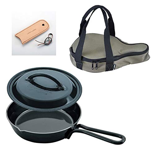 UNIFLAMEスキレット7インチ(17.8cm)はソロキャンプにピッタリなアイテムです。買ったら早速持ち出せる「蓋付きスキレット本体・収納ケース・レザーハンドル」の3点セット。丁度よいサイズのスキレットはソロキャンプ料理の幅を広げてくれる存在となります。少人数のキャンプに難しいことを考えなくても必要なものが揃っているスキレットが欲しい人におすすめしたいセットです。