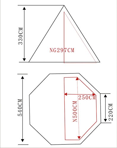 <商品スペック> 本体サイズ:約540×540×330cm インナーサイズ:約500×500×295cm 収納サイズ:約30×30×80cm 重量:約13.4kg 素材:フライシート/75DポリエステルタフタUV(耐水圧1500mm) インナー/68Dポリエステル フロア/210Dポリエステルオックス(耐水圧3000mm) ポール/32mmスチール 付属品:プラペグ16本、自在ロープ8本、ハンマー1個、収納ケース 原産国:中国