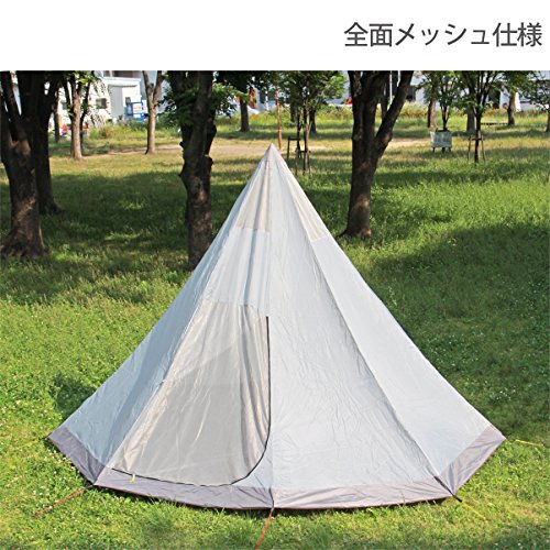<商品スペック> カラー:ベージュ 組立サイズ(外寸):(約)W4600 × D4600 × H3000mm インナーサイズ:(約)W4500 × D4200 × H3000mm 収納サイズ:(約)600×直径240mm 重量(付属品含む):(約)8.8kg 収容可能人数:大人8名 最低耐水圧:アウター/2000mm フロア/3000mm 材質:生地/75Dポリエステルタフタ ポール/スチール 付属品:アルミ製Y型ペグ、ストームロープ、キャリーバッグ、取扱説明書