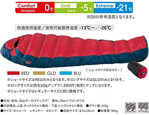 幅広く使える3シーズンモデルです。夏の高所登山から、冬の低所登山まで使用することができます。 超撥水加工を施した高品質で高機能ダウン(770FP)を使用していて、水漏れの心配がありません。 サイズは、最大長228cm×最大肩幅85cm(身長185cmまで)となっていて、レッド、コバルト、イエローのカラーバリエーションがあります。収納時のサイズは、φ14×30cmです。
