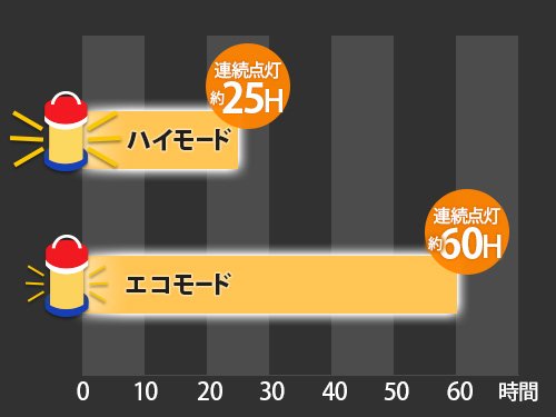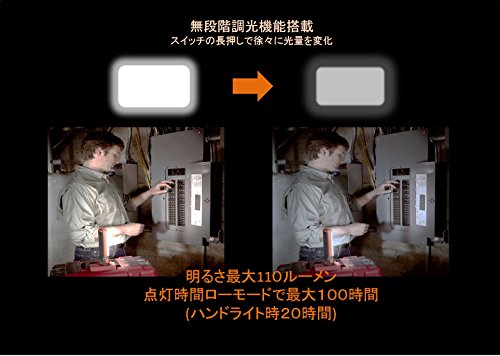 <商品仕様> ●明るさ:約 1650lm(ルーメン) ●使用バルブ:LED ●連続点灯時間:約 8.5〜60時間 ●本体サイズ:約 11.5×8×3.5(h)cm ●重量:約 600g (本体のみ:330g)