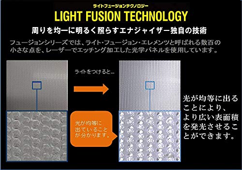エナジャイザー LEDフュージョン 折りたたみ式ランタンは、お好みで180°から360°まで角度の調整が できるおすすめのLEDランタンです。 スリムなLEDパネルから全体を明るく均一に光を照射できる、LIGHT FUSION TECHNOLOGY(ライトフュージョンテクノロジー)が採用されいるので、明るいのにまぶしくはありません。 エナジャイザーの画期的なLED技術が使われていて、消費電力を抑えて省エネを実現しています。 軽くてスリムなデザインな上、単三電池を使うので、バックパックやリュックでかさばらずに 持ち運べます。 全天候型対応防水(IPX4)なので、アウトドアでも安心して使えます。 お好みの角度と明るさで使えるので、スタンドライトやエリアライトとして活躍してくれること 間違いなしです。