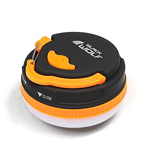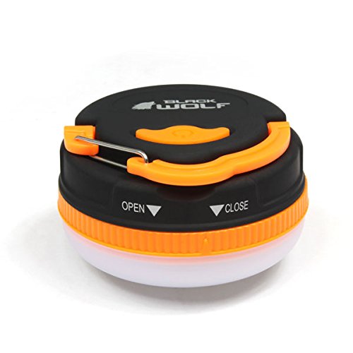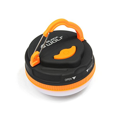 ■ブランド:BLACK WOLF ■商品名 :マルチLEDランタン ■価格 : ¥900 (税込) ■重量 :70(グラム) ■サイズ :直径70㍉×高さ42㍉ ※フック含む高さ:72㍉ ■素材 :【本体】プラステッィク 【スイッチ】シリコン ■その他 【電 源】単4電池×3個 【明るさ】 LED:3球 、輝度:180ルーメン 【点灯時間】約20時間 ソロキャンプから、様々なアウトドアシーンで活躍すること間違いなしのアウトドア道具です。 まずポケットに入るサイズ感。邪魔にならないので、どこでも持ち運べます。また、置く、吊るす、くっつける。様々な使い方ができるこの商品はマルチに使えるランタンとしておすすめです。
