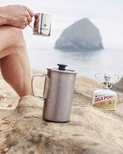 ■ブランド:snow peak ■商品名 : チタンカフェプレス 3カップ ■価格 :¥5,380(税抜き) ■重量 :約200(グラム) ■サイズ :φ82×H140(㍉) ■素材 【ポット・フタ】チタニウム 【プレス部】ステンレススチール 【つまみ】エラストマ樹脂 ソロキャンプ、ファミリーキャンプ、アウトドアすべてで活躍するこのカフェプレス。 コーヒー関連商品にもこだわりを持っているスノーピーク。外で飲むコーヒーはいつもの倍以上の味わいなはずです。そのコーヒーの旨味を最大限引き出すアイテムとしておすすめです。