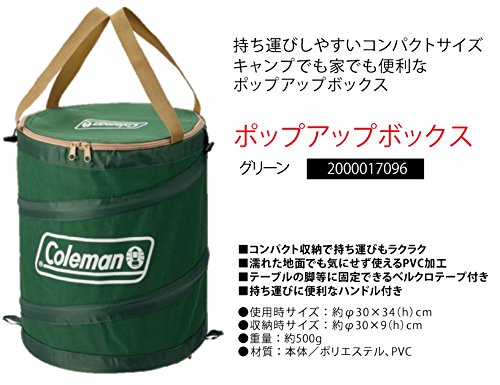 ■ブランド:Coleman ■商品名 :ポップアップボックス ■価格 :¥3,218(税込) ■重量 :約500(グラム) ■サイズ :約φ30×36(高さ)センチ ■収納時 :約φ30×9(高さ)センチ ■素材 ポリエステル、PVC 一つは持っておきたいポップアップボックス。 防水加工が施してあるので、濡れた地面でも問題なく使えます。ゴミ袋や収納ボックスなど汎用性の高い商品です。