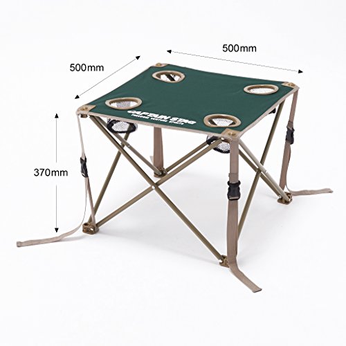 <POINT>●コンパクト収納テーブルにカップが付いた便利なセットです。●テーブルのコーナーにカップがセットできて、テーブルを広く使えます。●180度回転OKのハンドル付きでち運びに便利。●別売りのキャプテンスタッグ商品のシステムフリースタンドをセットすれば、ハイテーブルとしても使用できます。