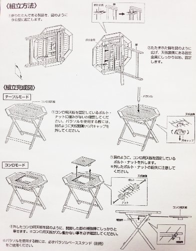 ●サイズ:幅約90cm×奥行約90cm×高さ約72cm●収納時サイズ:約84cm×約106cm×厚さ約8.5cm●重量:約7.5kg●耐荷重:テーブル全体約30kg、コンロモードの天板約8kg●推奨コンロ:PW-72732 炭焼き名人 万能七輪 水冷式●材質:天然木(表面加工/オイルステイン)●生産国:ベトナム