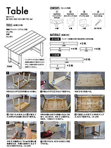 シンプソンストロングタイのキャンプテーブルDIYキットです。持ち運ぶことはできませんが、自宅の庭でキャンプを楽しむのに持って来いのテーブルとなります。高さがあるので、立ったまま調理がしやすいというのがポイント。
