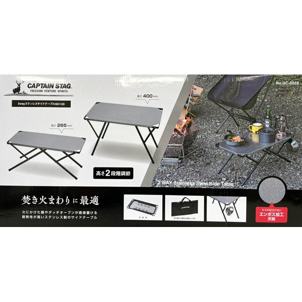 <POINT>●高さを2段階で調節できる●フレームをコンパクトに収納できる●熱したダッチオーブンなどをそのまま置ける●エンボス加工で傷が目立たない