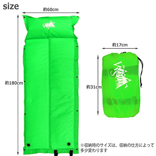<商品スペック> ●カラー:ブラック、ブルー、ブラウン、カモ、グリーン、オレンジ、ピンク、レッド、 ライト・グリーン ●サイズ:約 180cm×58cm×3cm ●重量:約 995g ●付属品:収納袋・収納バンド(本体一体式) ※膨らみが不十分の場合は直接、口で空気を入れて下さい。