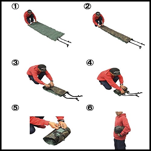 <商品スペック> ●セット内容:本体、収納袋、補修テープ、保証書付き説明書 ●カラー:3色(迷彩、ネイビー、ダークグリーン) ●サイズ:約 175cm×57cm×2.5cm ●収納サイズ:約 32cm×18cm ●重量:約 982g ●厚さ:2.5cm ●用途:キャンプ、車内泊、仕事場での宿泊、仮眠の時などに役立ちます。 ※地面の凹凸が激しい場所での使用は控えてください。 また、ご自宅での来客用のベッドのような厚みのある寝心地を 重視する用途には向いていません。 この製品は厚さ2.7㎝の簡易マットですのでレジャー、 アウトドア、車中泊、仮眠、などと行った用途に適しています。