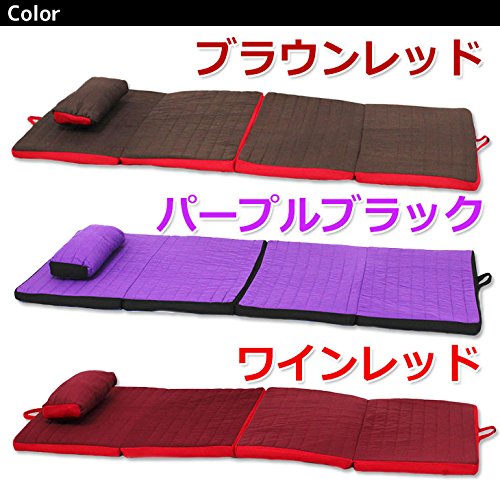 <商品スペック> ●セット内容:マット、簡易枕、アイマスク、専用袋、保証書 ●カラー:ブラウンレッド、パープルブラック、ワインレッド ●サイズ:広げたとき (約)長さ180cm×幅70cm×厚さ5cm 折りたたんだとき (約)横幅 70cm×縦幅 45cm×高さ 20cm 専用袋に入れたとき (約)横幅 80cm×縦幅 45cm×高さ 20cm ●材質:低反発ウレタンフォーム、ポリエステル、綿、ナイロン、他