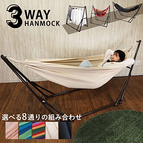 複数の使い方を選べるハンモックスタンドをお探しの方には、こちらのアイテムがおすすめ。こちらはハンモックとしてだけでなく、チェアやハンガーラックとしての使用も可能です。
