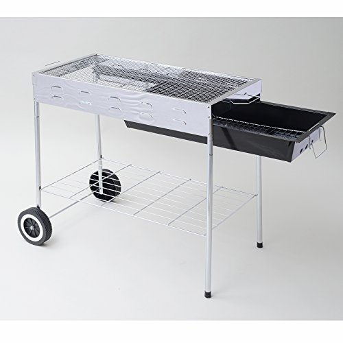 移動に便利なホイール付きの本格的な大型チャコールグリルです。 炭置網が付いているので通気性に優れ炭の燃焼効率が良くなっています。 引き出し式の灰受けで焼却灰の後始末も簡単で、火力調節レバーが付いているので火力の調節も簡単にできます。 バーベキュー時、手を熱から守るヒートシールドプレートやフタかけ用のフックが付いているのでフタの置き場所にも困らず、細やかな気配りがうかがえます。