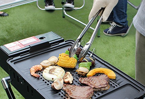 炭を使わないカセットガスボンベ式なので、やっかいな火おこしなしに即スタートでき、後片付けも簡単です。 ガス火なので調理時間も短く、火力調整も容易で、カセットガス1本で1時間以上使えるので荷物も少なくなります。 クッキングプレートはテフロン加工が施されていて、取り外しもできます。