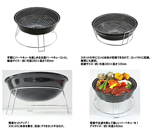 生産国:中国 サイズ:使用時/約直径36×50(h)cm(焼面高さ約30cm)、焼面サイズ/約直径34cm 重量:約2.1kg 材質:スチール、他 付属品:焼網 交換用焼網:170-9474