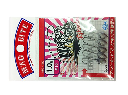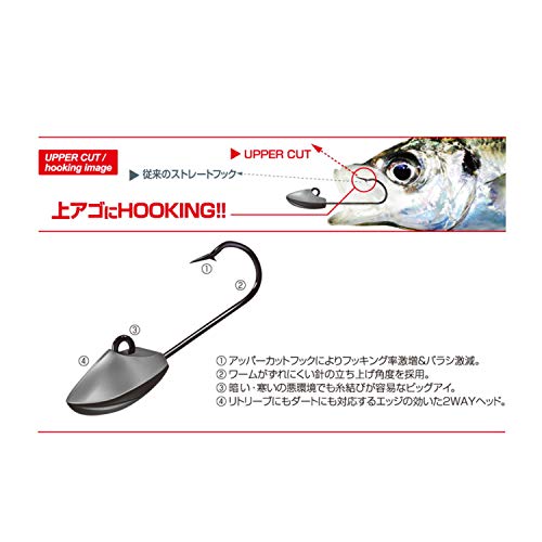 マグバイトのアッパーカット ジグヘッドです。 価格は315円(2017/3/9現在) 吸い込んで吐く捕食行動を 捕らえる上向きの アッパーカット形状。 細軸ロングシャンクで 上あごにしっかり フッキングします。