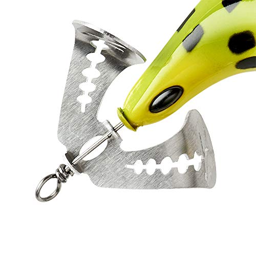 このバスベイトは、プロペラの形が異なります。 このプロペラの形が、水をかき乱したときに、ベイトが慌てふためいている水音を出してくれます。広範囲に水しぶきを飛ばしてピーるしたいときにおすすめのバスベイトです。