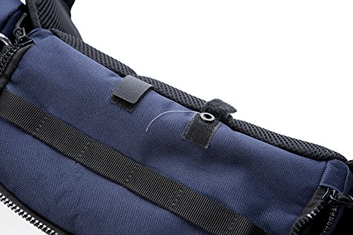 ファスナーは全て止水ファスナー(※完全防水ではありません)。握りやすいオリジナル引手。多目的に使用できるD環、ナス環。サイドにピンオンリールなど取り付けやすいベルトホルダー。