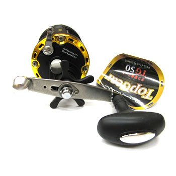 ベイシックジャパンの TOP Gear TG50です。 価格は5,29円(2017/11/9現在) 価格が魅力の糸付き ベイトリールです。 PEライン8号50mで 低予算で大物狙いの タコ釣りタックルを揃えられます。