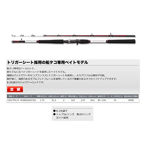 プロックスのCX攻技蛸TE M-175です。 価格は7,870円(2017/11/9現在) タコ向けに作られた 専用の船竿です。 本格的に船タコを始める方、 専用のタックルを 揃えたい方におすすめです。