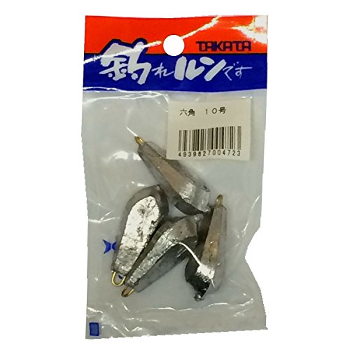 タカタの六角オモリ パック 10号です。 価格は186円(2017/11/10現在) 胴つき仕掛けにはナス型や 六角型のオモリがおすすめ。 仕掛けが流れない程度の 重さが必要になるので 岸釣りでは10号前後、 船釣りでは釣り方に応じて 調整してみましょう。 塗装や形状を選択するのも 仕掛けを自作する楽しみのひとつです。