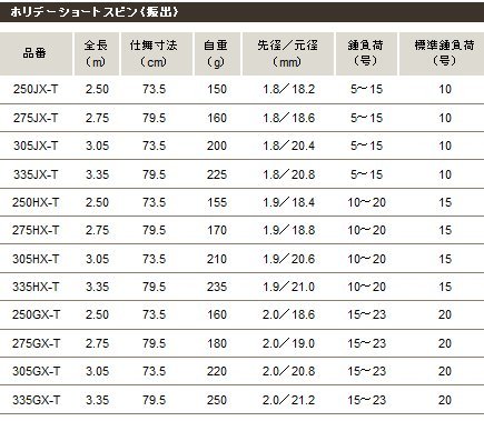 シマノのホリデーショートスピン 335JX-Tです。 価格は7,255円(2017/11/10現在) 10号前後のオモリを 快適に扱う事ができる オーソドックスな投げ竿です。 生きエサのブッコミは 思い切り投げると エサが死んでしまうので 使用する釣り竿は遠投性能よりも 扱いやすさや手軽さで選んでください。