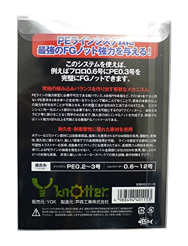 よつあみのYノッターになります。 こちらもFGノットが簡単に結べるようになる代物です。 FGノットで一番面倒な作業の締め込みが簡単にできてしまうというものです。 ラインのセッティングがちょっと難しい面があるのですが、 ラインセッティングさえできてしまえば、自動で作ってくれます。 最後に、ハーフヒッチで締め込んで行けばFGノットが結べてしまいます。 こちらも場所をとらないコンパクト使用なので、持ち運びにも困りません。 また、プラスチック製ですのでさびの心配も無く軽量なのでランガンスタイルの釣りにとても役に立ちます。