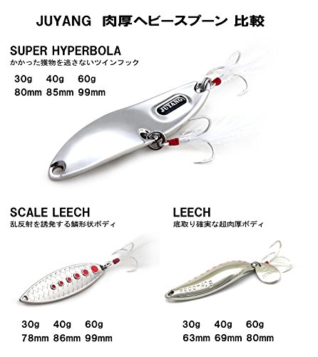 肉厚 ジグ スプーン SUPER HYPERBOLA スーパーハイパーボーラ (シルバー, 40g) [ アキアジ ブリ ヒラメ マゴチ タチウオ シーバス ブラックバス ルアー スプーン 釣り ]