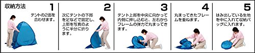 組み立て簡単 テントを広げ、本体の上部につながる紐を引くだけで組み立てることができます。 大人なら2人、子供なら3人での使用が出来ます。 アウトドア キャンプなどで威力を発揮してくれます。 テント表面には PU加工がされていて、防水に優れているので安心ですね。 軽量で コンパクトなので、地震や災害時の防災用品としてもお勧めです。 撤収も簡単にできます。