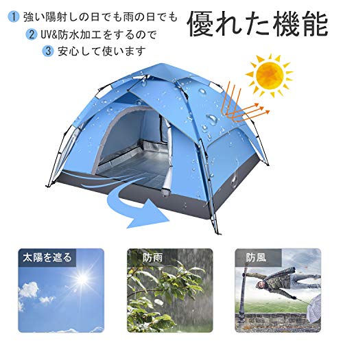 3.ワンタッチ テント 3人用 撥水 UVカット加工 フライシート付き 簡単テント
