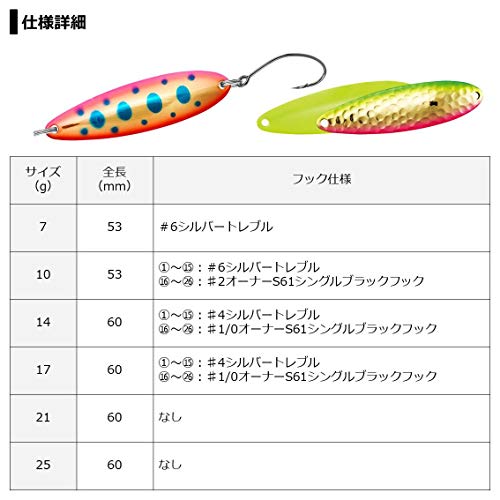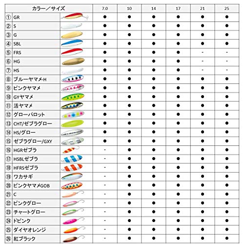スプーン、スピナーも同様です。 ウェイトは5g前後、 サイズは50mm前後が おすすめです。 人気の製品、カラーが 店頭に無い場合は 通販サイトもチェックしてみて下さい!