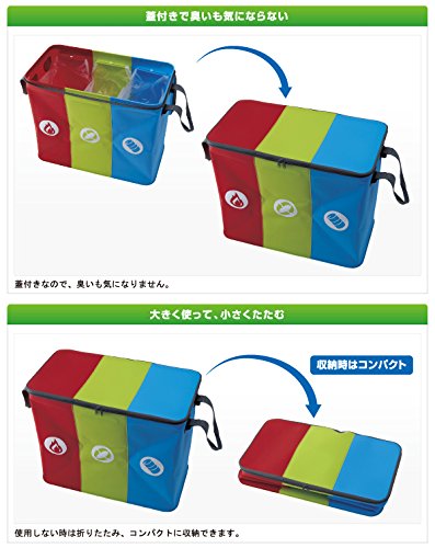 出典: http://www.logos.ne.jp/products/info/2242燃えるゴミ・リサイクルゴミ・燃えないゴミの3種類に分別できます。 蓋がついているので、カラスにゴミを突かれたり、夜に小動物などに漁られたりされません。また、匂いが外に漏れません。
