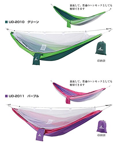 ハンモックと蚊帳が、一体型になっている1人用タイプ。ハンモックと一緒に自動で蚊帳も組み立てられるため、時間がかからないのが特徴です。ハンモックを裏返すことで、蚊帳なしにすることもできます。