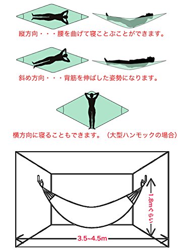 出典: https://www.google.co.jp/search?q=%E3%83%95%E3%82%A1%E3%83%9F%E3%83%AA%E3%83%BC%E3%83%8F%E3%83%B3%E3%83%A2%E3%83%83%E3%82%AF&oq=%E3%83%95%E3%82%A1%E3%83%9F%E3%83%AA%E3%83%BC%E3%83%8F%E3%83%B3%E3%83%A2%E3%83%83%E3%82%AF&aqs=chrome..69i57j0l4.8035j0j8&sourceid=chrome&ie=UTF-8#q=%E3%83%95%E3%82%A1%E3%83%9F%E3%83%AA%E3%83%BC%E3%83%8F%E3%83%B3%E3%83%A2%E3%83%83%E3%82%AF&tbm=shop&spd=799507462312821376180㎝以上の幅があるハンモックです。3人まで対応できますが、1人でゆったり使用するのもいいですね。 設置には、両端の間隔が360㎝以上、取り付けの高さは160㎝以上必要です。