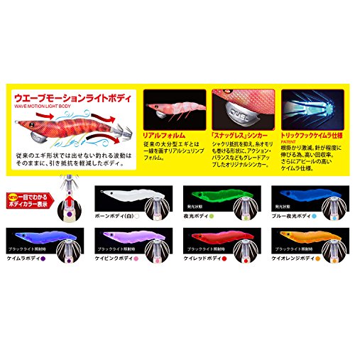 堤防からのヤリイカのウキ釣りに使用しています。 普通の「えさ巻きテーラー」に比べ、各段にイカののりが良いです。 エギに巻くエサはキーストンのHPにあるとおり、塩漬けしたキビナゴがベストだと思います。 エギのため手返しも早く、隣の釣人より倍以上の釣果が期待できます。 今シーズン、3桁越えの釣果を数回経験しました。 フォールの姿勢が抜群で、ヤリイカ釣りに最高のタックルだと思い