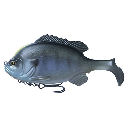 リアルなブルーギルのようなスイムベイトです。テールと胸ビレがリアルに動くことでバスを誘います。マグネットシステムを搭載しているのでフックが暴れることがありません。