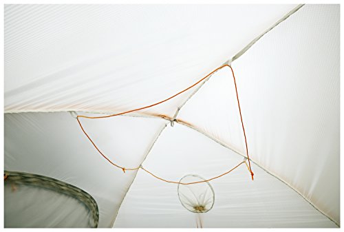 2名で使用可能なテントとしてはとても軽量につくられています。 フロア面積2.8平方メートル、前室面積0.9平方メートル、 室内最大高104㎝。 身長168センチの私でも、テントの一番真ん中だと背中をまるめることなく普通に座っていられます。 2名用なので、1人で使用するとテント内空間も広く使え、 ザックを中に収納し荷物を色々を広げても 室内作業は快適に行えます。テント内での着替えも楽に行えます。
