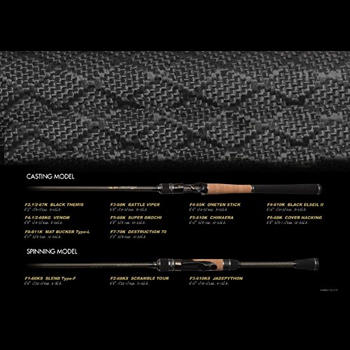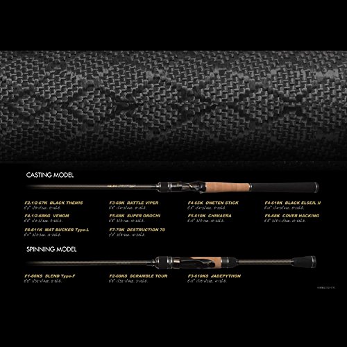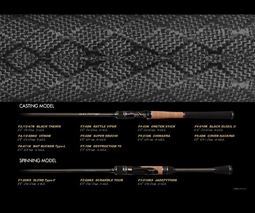 [表記一覧] 長さ:6’10” サブネーム:BLACK ELSEIL II ウェイト:129g ルアーキャパ:1/4~3/4オンス ラインキャパ:8~20ポンド